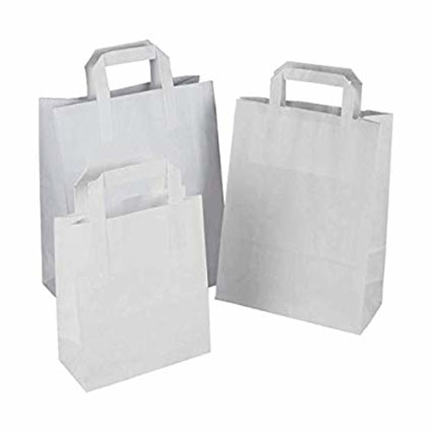 Login to View PricesWhite Flat Handle Paper Bags approx 70gsm with block bottom are a great, environmentally friendly alternative to plastic bags.